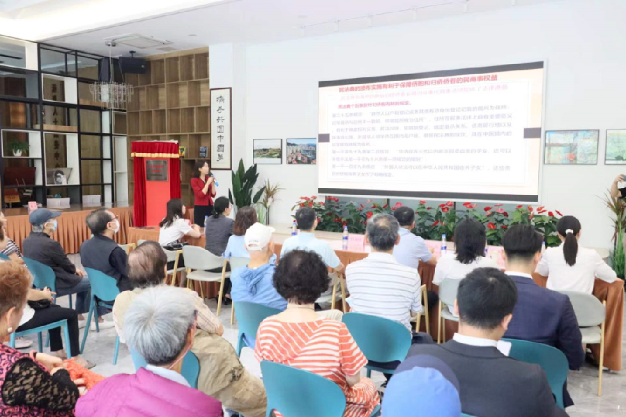 ▲开展法律知识讲座 “工作站肩负三重使命,既要让乡音乡情的‘老经验’焕发新光彩,也要让全流程服务跑出加速度,更要为新型涉侨纠纷提供‘定盘星’。”市中级人民法院民四庭庭长徐红妮表示。工作站成立后,侨联委派专业调解员驻点服务,联动资深法官提供“调解+法律咨询”组合服务,重点破解涉外、知识产权等新型纠纷难题,为侨胞在粤港澳大湾区创新发展筑牢法治保障。