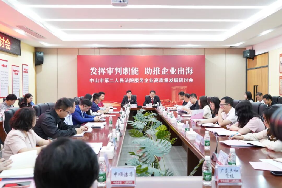 ▲3月26日上午,中山市第二人民法院在南头镇举办“发挥审判职能助推企业出海”服务企业高质量发展研讨会。 新年伊始,全省、全市高质量发展大会接连吹响奋进号角,中山法院迅速响应、主动作为,落实全市法院工作会议部署,紧扣“发挥法治引领、规范、保障作用,以公正高效司法为中山增创新优势、实现新突破提供坚实法治保障”的工作要求,深入基层、对接企业,把司法服务送到产业一线、企业门口。此次研讨会,是市第二人民法院聚焦中山“制造业当家”核心定位、助力外向型经济提质增效的务实举措,精准对接企业出海司法需求,共商法治化营商环境高质量发展新路径。 司法服务靠前发力,打通护企“最后一公里” 研讨会现场,市第二人民法院院长郑骅向与会企业家、商会代表致以热烈欢迎,并详细介绍法院服务企业高质量发展的核心举措。郑骅表示,当前中山制造业转型升级、企业开拓海外市场步伐加快,司法保障必须同步跟进、精准发力。市第二人民法院将以此次研讨会为新起点,持续深化法企常态化沟通机制,全程对接企业跨境经营、涉外纠纷等核心司法需求,依法公正高效审理各类涉企、涉外商事案件;全面吸纳企业意见建议,持续优化司法服务流程,真正打通司法服务企业“最后一公里”;强化法治宣传与风险预警,全面提升企业依法经营、依法维权的能力,让法治成为企业安心经营、放心出海的坚实“护身符”,全力护航中山企业行稳致远。