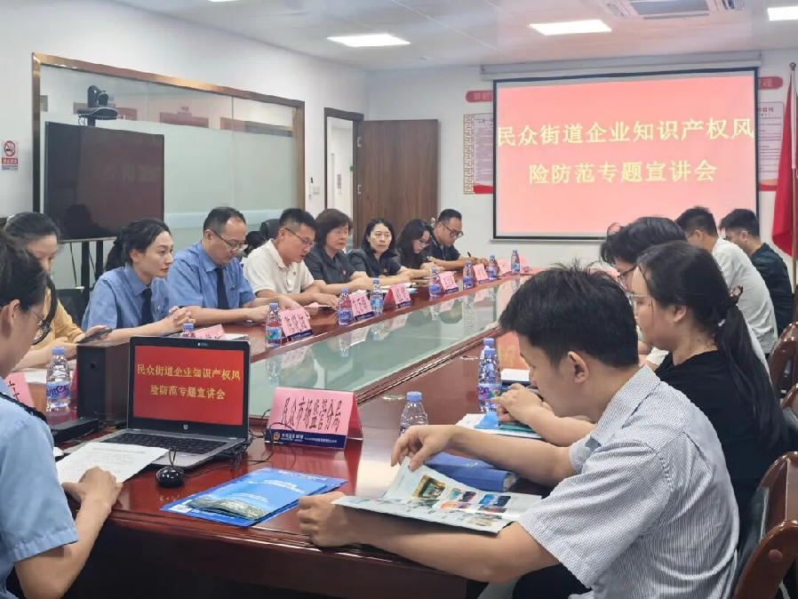 在中山市体育运动学校,市第一人民法院翠亨法庭黄琴法官从学生脚上的运动鞋讲起,通过“找茬辨假”小游戏和激烈的知识抢答,揭秘体育世界里的“隐形规则”,让孩子们在欢声笑语中练就辨别真伪的“火眼金睛”。 “希望通过这些互动,能让知识产权保护的种子在孩子们心中生根发芽,让他们成为尊重创新、抵制盗版的小卫士。”黎妙法官表示。 三、助力企业发展 送法进企业,精准把脉法律风险 聚焦企业急难愁盼,市第一人民法院翠亨法庭联合多部门举办“民众街道企业知识产权风险防范专题宣讲会”,为辖区企业送上“法治大餐”。