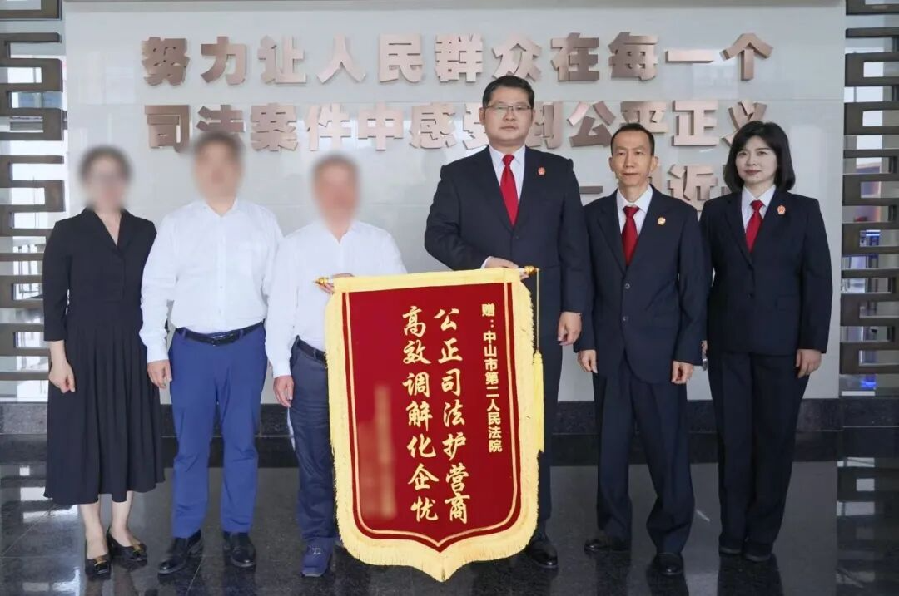 这面锦旗的背后,是一场涉案金额近5000万元、牵涉两家知名企业、甚至可能波及刑事风险的复杂纠纷。市第二人民法院通过三轮精准联动调解,成功化解纠纷,将“法治是最好的营商环境”这一郑重承诺,转化为企业触手可及的真实获得感。 困局:巨头“官司”引发连锁反应 故事的开端,源于中山本地一家上市企业宏宇集团与其控股的蓝焰科技(化名)之间的“内耗”。 一边是涉及企业核心技术的“损害公司利益责任纠纷”,一边是关乎企业正常运转的“证照返还纠纷”。这两起案件如同两团乱麻,涉及股东会议决议效力、不正当竞争、专利权归属等问题,缠绕住两家企业。 与此同时,作为上市企业,宏宇集团也面临着信息披露合规压力。“如果处置不当,不仅两家企业的经营会停摆,品牌声誉也会受损,还可能会影响多名员工家庭的利益。”承办法官在接手案件时,敏锐地察觉到了这不仅仅是一起简单的民事官司。 破局:三次“联动”解开千千结 面对错综复杂的案情,市第二人民法院主动扛起护企责任,成立调解组,启动府院联动机制,打出了一套“组合拳”。 ►第一次联动:走出法庭,实地“把脉”。 “坐在办公室里是解不开这种死结的。”专项小组直接走进了涉案企业。在生产车间和会议室里,法官详细询问经营现状、核心诉求及底线。通过实地走访,法官全面掌握了董事会决议的程序瑕疵细节,并评估了专利争议可能带来的影响。与此同时,法官主动对接属地党委政府及公安机关,对刑民交叉的法律关系进行综合研判,同镇综治中心、公安机关建立信息共享机制,为后续的调解工作筑牢了根基。 ►第二次联动:背对背,攻心“破冰”。 信任一旦崩塌,重建便难如登天。针对双方巨大的信任裂痕以及小股东家属的焦虑情绪,办案团队采用了“背对背”的调解策略。 “诉讼是一场没有赢家的消耗战,时间成本和金钱成本你们算过吗?”在与涉案当事人和企业的单独对接中,法官既是倾听者,也是“算账人”,耐心倾听各方诉求,结合法律规定细致释法明理,客观分析诉讼对企业经营的负面影响。在法官的耐心疏导下,各方紧绷的神经逐渐放松,对立情绪开始消融,理性的沟通渠道终于被重新打通。