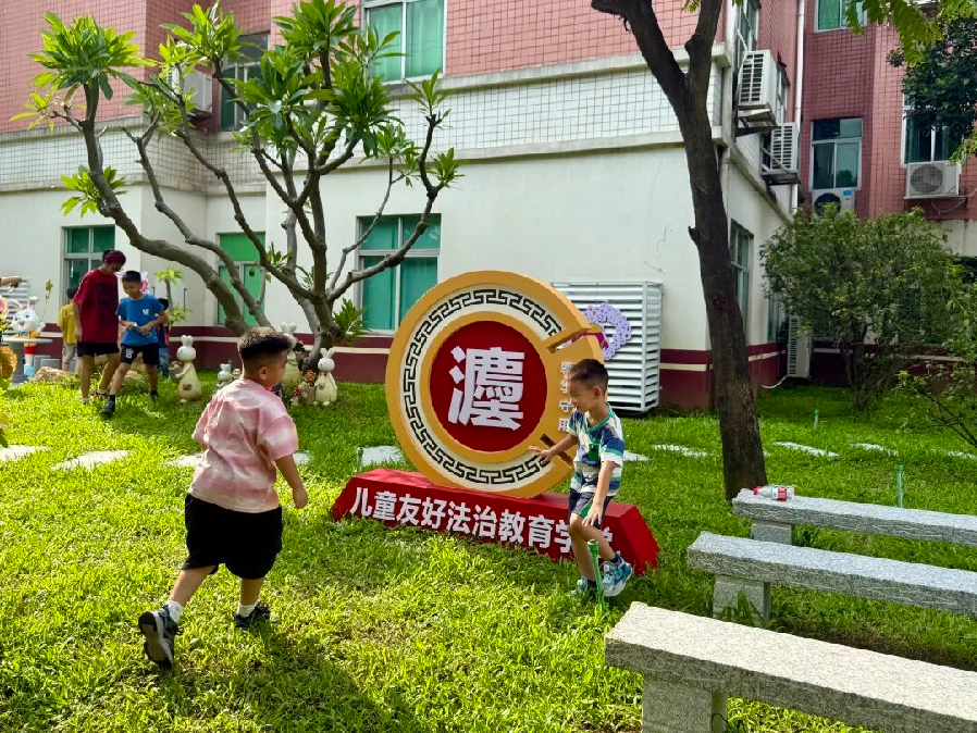 ▲儿童友好法治教育学堂。 户外区域,精心打造的调解花园成为孩子们的“情绪缓冲带”。卡通动物雕塑、彩虹桥、绿植草地与休闲步道相映成趣,自然元素与童趣设计的融合,有效缓解了未成年人参与司法流程时的紧张情绪。室内空间则采用浅绿、米黄、粉色等柔和色调,儿童观察室、心理疏导室、爱心妈妈小屋均配备防撞圆角家具,杜绝安全隐患。有声故事书、沙盘游戏工具、舒适沙发与坐垫的设置,既增强了空间亲和力,也为有需要的母婴提供了温馨的哺乳环境。 这样的适儿化改造在司法实践中发挥了关键作用。在甲某诉乙某离婚纠纷一案中,双方为争夺8岁孩子的抚养权争执不下,孩子因恐惧拒绝进入法庭表达抚养意愿,导致案件审理陷入停滞。承办法官黄燕芳引导孩子体验调解花园的卡通设施,在儿童活动区翻阅绘本、摆弄玩具,逐步消解了孩子的抵触心理,为案件顺利审结扫清了障碍。 机制化协同创新:为权益守护筑牢“防护网” 围绕儿童利益最大化原则,黄圃人民法庭创新构建多元协同工作机制,将专业力量与跨部门资源整合,实现对未成年人权益的全流程、精细化守护。