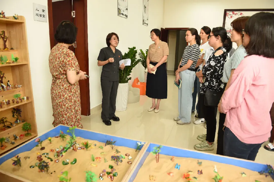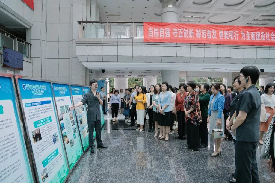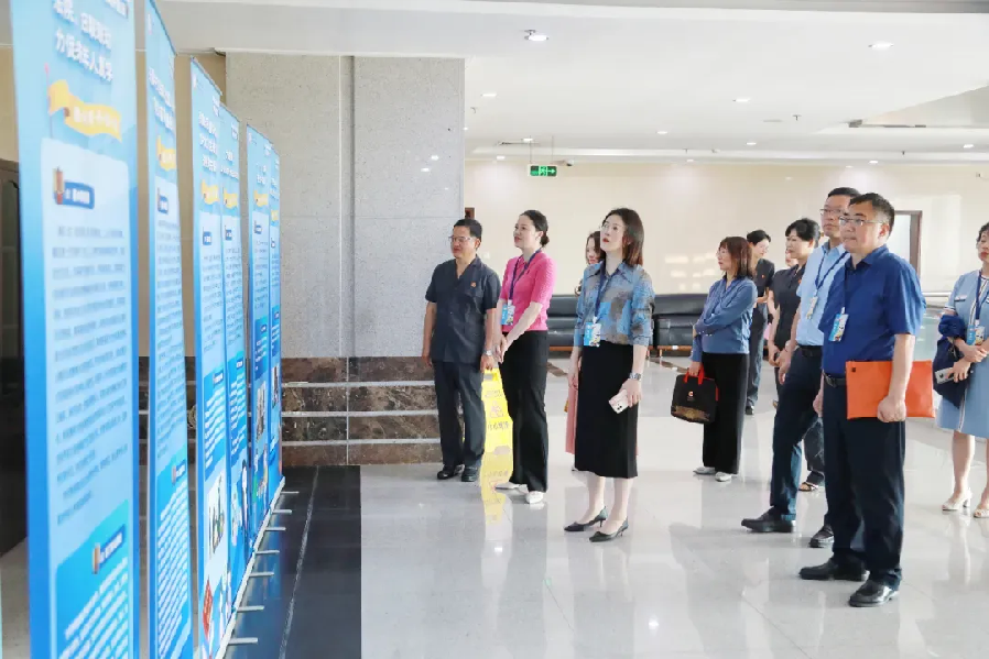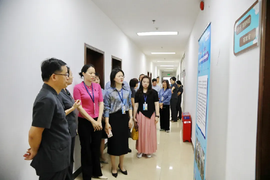 与会人员在二楼大厅参观了家事审判特色功能区,聆听中山法院妇女儿童权益保护工作的创新举措,并观看了中山法院家事审判改革宣传片。