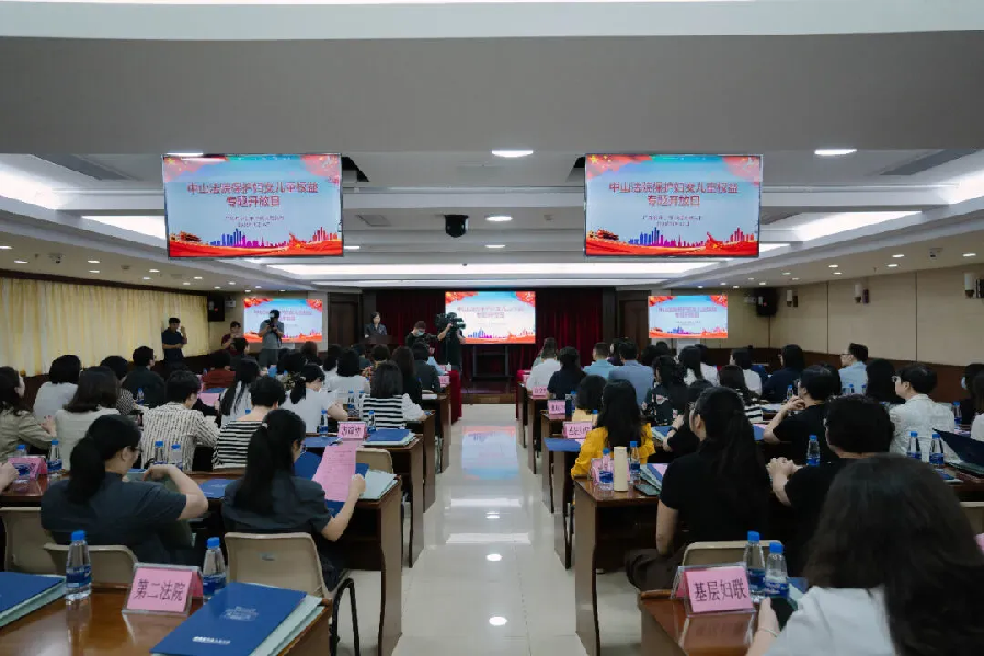 中山历来高度重视妇女儿童权益保护工作,早在2013年中山市就被确定为全国家庭教育指导服务体系试点城市,将家庭教育纳入城乡公共服务体系,形成党委政府重视、部门联动配合、社会共同参与家庭教育的中山模式。据统计,中山市妇女儿童的主要权益指标处于广东省前列。作为最高人民法院指定的全国首批家事审判改革试点单位,中山法院近年来全面开启家事审判机制和方式的改革,创新多项在全省乃至全国领先的制度,不仅推动了我国家事审判领域的法治化进程,也为诉源治理、法治中山建设提供了可复制、可推广的经验。 为了进一步加强妇女儿童权益的司法保障,推动婚姻家庭纠纷的诉源治理工作,4月16日,中山两级法院三个会场同时举办了中山法院保护妇女儿童权益专题开放日活动。 上午9:30,在市中级法院,全国人大代表米雪梅等全国、省、市人大代表、政协委员、市妇联领导、镇街妇联主席及相关业务骨干、市家庭教育讲师团成员、律师、新闻媒体记者共计102人参加活动;69名代表、委员等在市第一法院、市第二法院分会场参加活动,零距离感受中山法院妇女儿童权益保护工作新成效。