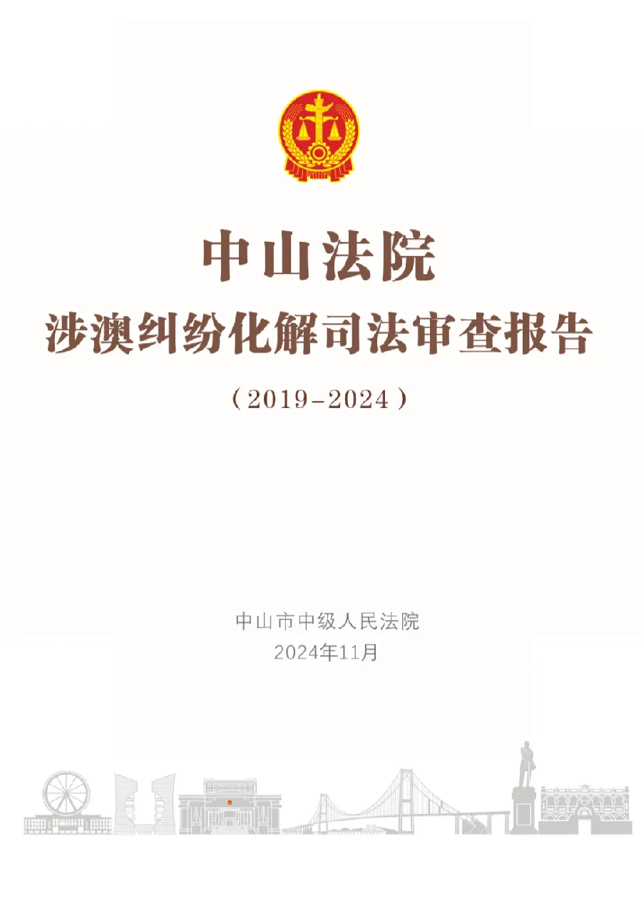 11月20日,中山市中级人民法院发布了《中山法院涉澳纠纷化解司法审查报告(2019—2024)》(下称《报告》),详细介绍了中山近年来化解涉澳纠纷工作的基本情况、创新举措与成效等,同时公布了部分典型案例。