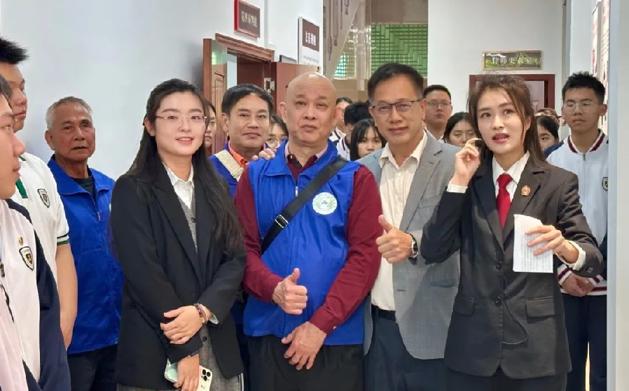 观庭貌、听讲解、明流程、品文化——“原来这就是法庭” “为方便港澳居民参加诉讼,我们设立了港澳居民诉讼服务点,提供繁体字文本的各类起诉书模板以及诉讼指引,并提供繁、简体转化字典以供查阅……”坦洲法庭干警李健乐带领大家参观坦洲法庭,并用粤语和英语向大家讲解坦洲法庭的各项工作流程、设施设备、特色创新机制、法治文化品牌等等,给同胞们留下了深刻的印象。