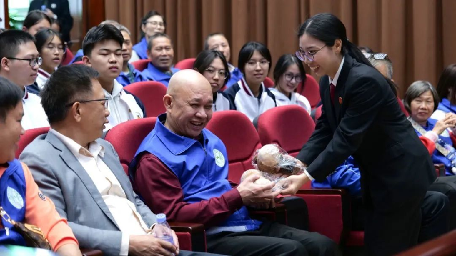 澳门中山坦洲同乡联谊会谭东汉会长不假思索地说出答案,掷地有声,全场顿时响起雷鸣般的掌声。大家在一问一答的趣味互动中,更加了解内地法治文化。