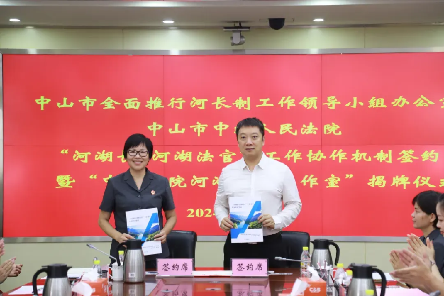 ▲中山市中级人民法院与中山市河长办举行《“河湖长+河湖法官”工作协作机制共建协议》签约暨“中山法院河湖法官工作室”揭牌仪式。 中山市中级人民法院党组成员、副院长李桂兰介绍,根据今年5月签订的《中山市全面推行河长制工作领导小组办公室