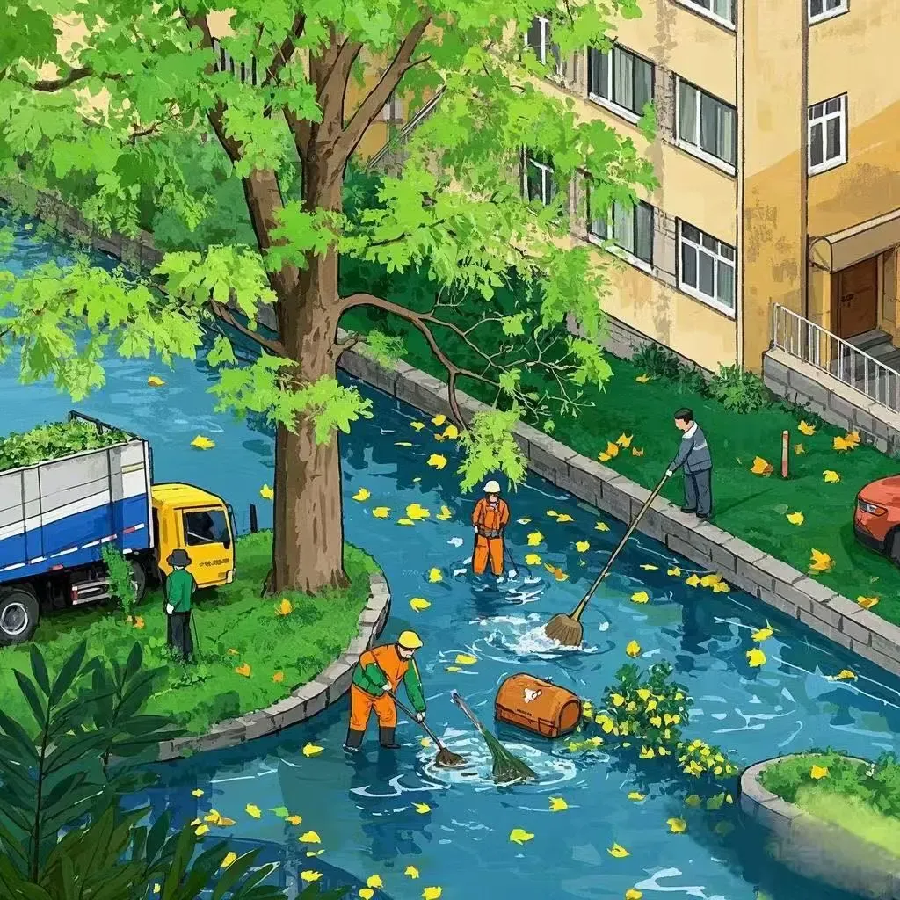 这起案件标的额虽不大,但双方积怨已久。承办法官邹军为化解矛盾,多次致电双方,详细了解情况。打给尚女士时,她委屈地说:“法官,我实在没办法了。找物业多次都没用,每天生活在又脏又臭的环境里,心情糟透了,哪还能交物业费!”物业公司这边,负责人也一直诉苦:“法官,我们也不容易。小区事务繁杂,提高物业费是按程序来的,只是部分业主不理解。处理这些树要按规定,不是我们想怎样就怎样。”邹法官开庭前组织调解,但首次调解双方未能达成一致。尚女士又提起业主知情权诉讼,矛盾升级。庭审中,面对物业公司多收费与停水催收物业费的乱象,邹法官严肃地指出:“多收取费用以及采用停水方式催收物业费的行为是违法的,必须立即停止向包括尚女士在内的相关业主实施,以免引起更多矛盾、纠纷并给自身带来不利后果。”掷地有声的话语直接切中问题要害,让物业公司深刻认识到行为的错误。“问题终究要解决。当前请大家都充分考量各方诉求,有问题好好解决,别把矛盾扩大,法院会公正处理。”这番话缓和了双方情绪。随后,邹法官采用背靠背调解方式,多轮磋商后,促成双方达成调解协议。 根据双方的调解协议,物业公司在征得权利人同意后,在三天内联系专业绿化修剪团队,对小叶榄仁树进行全面修剪,将过长、过密的树枝修剪至安全高度,避免对尚女士房屋及周边环境造成影响,修剪产生的枝叶及时清理运走;针对公共水系,物业公司安排专业清洁人员及时进行清淤疏通工作,清理水面漂浮物和水底沉积的杂物,之后定期巡查维护,确保水系畅通;为防止落叶再次堆积,物业公司增加小区内的垃圾清扫频次,尤其是尚女士所在区域重点关注,及时清理落叶和其他垃圾。