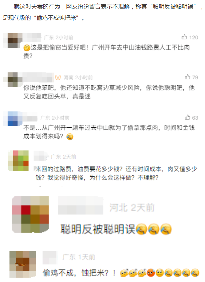 被抓后,林某和吴某如实交代了整个作案过程。原来,为了不被发现,两人每次偷盗价值约500元的商品。一个月内,他们以“大包换小包”的方式作案7次,共计盗得价值约3500元人民币的商品,用于日常生活食用。事后,两人为取得超市的谅解,赔偿了10000元。但即便如此,他们的行为也无法逃脱法律的制裁,法院经依法审理,判决林某和吴某犯盗窃罪,其中林某被判处有期徒刑八个月,并处罚金人民币3000元;吴某被判处有期徒刑六个月,缓刑一年,并处罚金人民币3000元。 法院介绍,盗窃罪是典型的数额型犯罪,需要达到一定金额才入刑,但在多次盗窃的情形下,即使每次金额未达到数额较大标准,行为人多次盗窃,同样构成盗窃罪。 法官提醒,诚信社会有赖大家共建,在生活中,像林某和吴某这样的盗窃行为,有违“法治”“诚信”的社会主义核心价值观。他们看似只是贪图小便宜,但实际上后果严重,一旦构成犯罪,将受到法律的惩治。 网友:我不理解 就这对夫妻的行为,网友纷纷留言表示不理解,称其“聪明反被聪明误”,是现代版的“偷鸡不成蚀把米”。