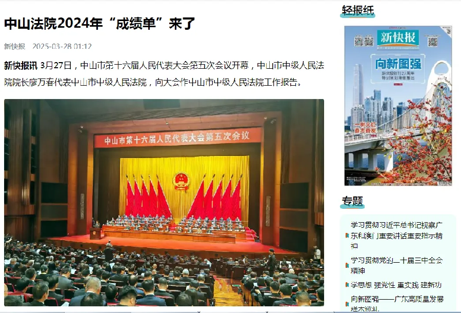 3月28日,中山市第十六届人民代表大会第五次会议高票通过中山市中级人民法院工作报告,媒体聚焦法院工作报告都提到了哪些工作?↓↓↓