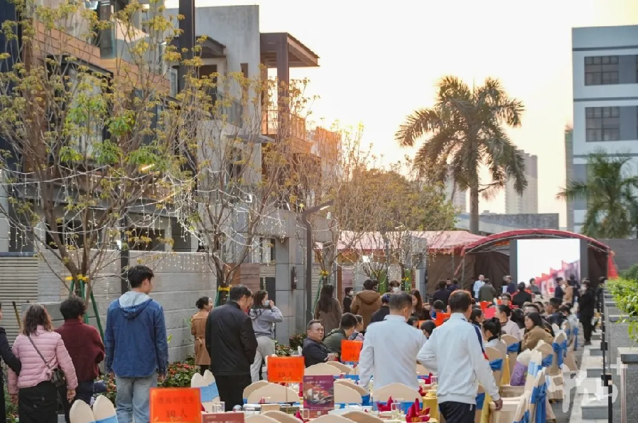 ▲业主在小区参加宴会。 近日,中山市中级人民法院(以下简称中山中院)收到黄圃镇党委政府送来的锦旗,感谢法官们“竭尽全力保交房,为民排忧勇担当”。