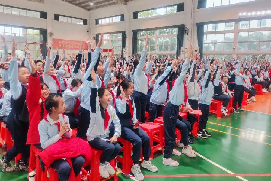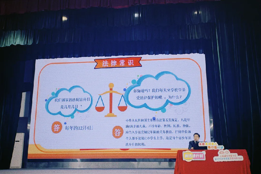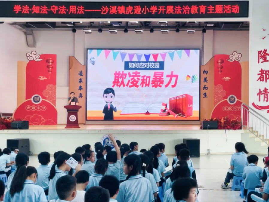 在沙溪镇虎逊小学,市第二法院综合审判庭庭长瞿兵为高年级同学们作法治安全教育讲座。瞿法官以通俗易懂的语言,结合真实且发人深省的案例,深入浅出地讲解了与小学生日常学习生活紧密相关的法律知识。在场同学们全神贯注,踊跃互动。