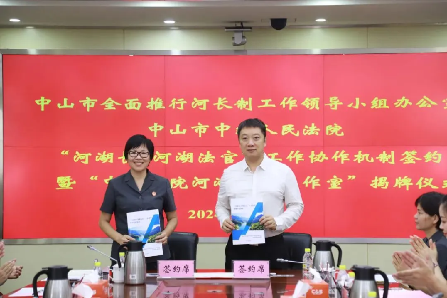 中山市中级人民法院与中山市河长办举行《“河湖长+河湖法官”工作协作机制共建协议》签约暨“中山法院河湖法官工作室”揭牌仪式。
