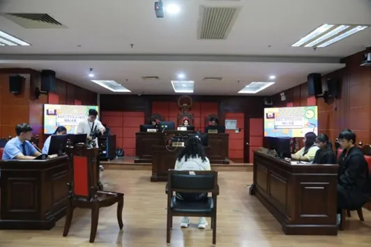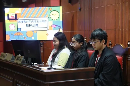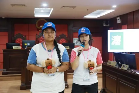 ▲香港同学们开展全英模拟法庭 庭前环节同样干货满满!工作人员用流利英语讲解法治基础知识,对比内地与香港司法制度的差异,解读中国传统法治文化中的智慧。问答互动时,同学们积极参与;法庭角色体验中,大家争相尝试穿上法袍,敲响法槌;最后收到的法院文创礼品——人气玩偶“Fachuichui”(小法槌)一亮相就圈粉无数,既可爱又透着庄严感,同学们拿到手就忍不住举起来模仿“敲槌”动作,这份带着司法温度的纪念品,让法治体验的快乐延续得更久!