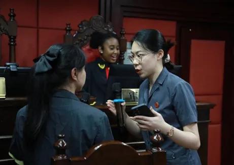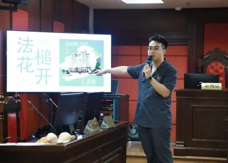 live. It was very fun for all of us to participate in it. 今天最过瘾的是现场模拟法庭实战演练。我们拿着剧本,对着台词念,全程实时推进,所有人都觉得参与感十足! I