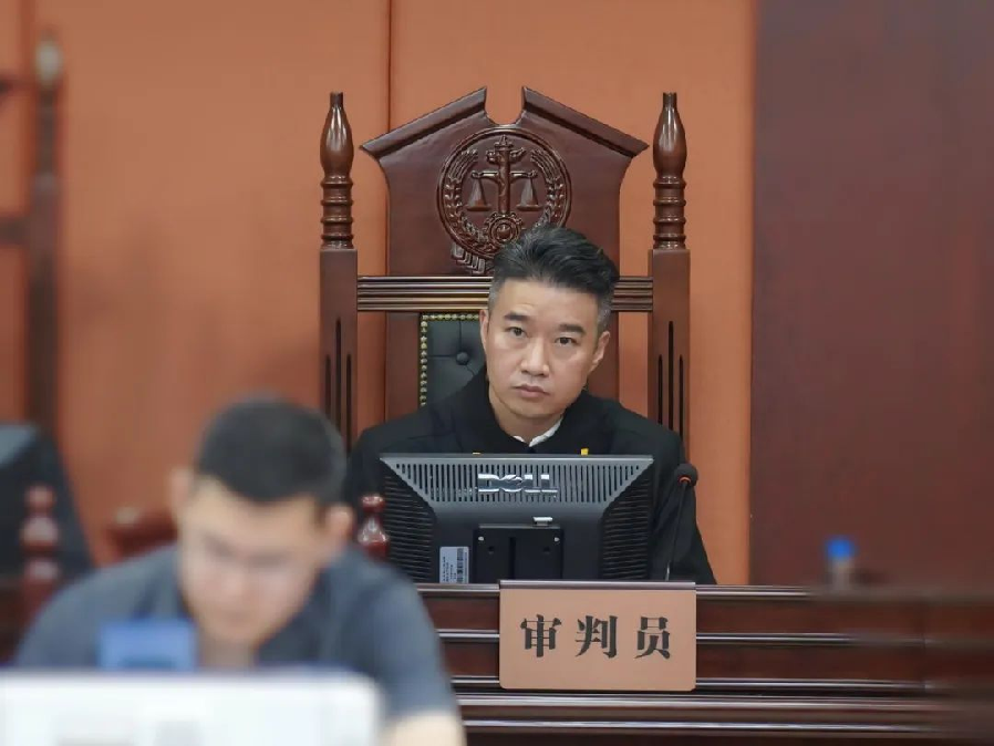 (真实庭审中的裴涛法官)