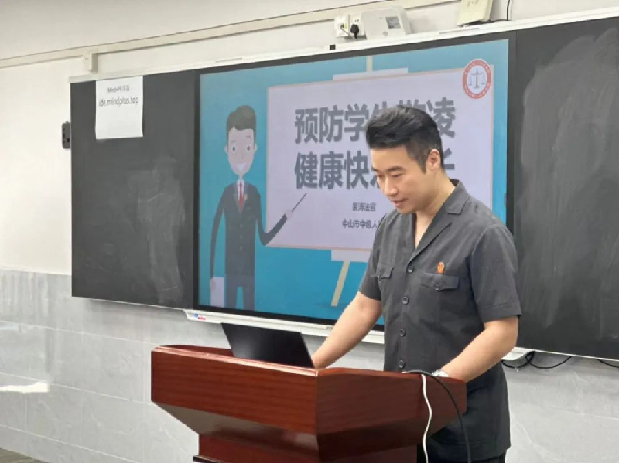 脱下法袍,裴涛法官的身影同样活跃在普法教育的前沿。作为中山市水云轩小学的法治副校长,他积极深入校园,用真实生动的案例和深入浅出的讲解,为莘莘学子们带去精彩的法治课堂。他将复杂的法律条文转化为孩子们能理解的道理,他认为,“法槌不仅要敲在法庭上,更要敲进下一代的心坎里”,以实际行动播撒法治的种子。