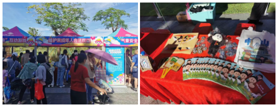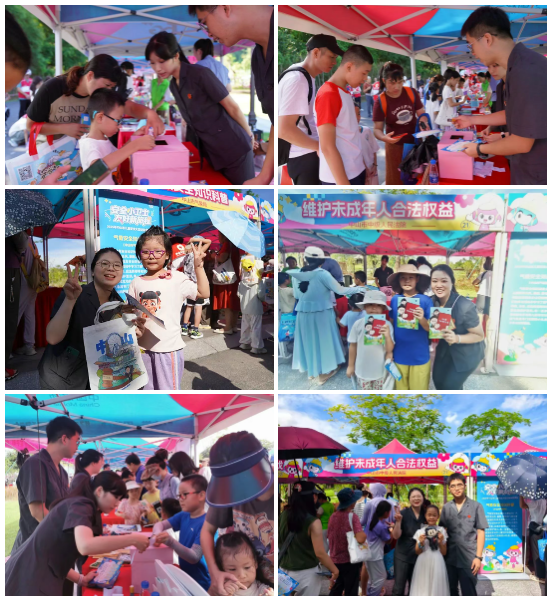822日上午,“安全小卫士 友好新旅程”2025年中山市儿童安全大型公益体验活动在古香林公园举行。活动紧紧围绕“少年儿童心向党 牵手护航伴成长”工作部署,共设45个主题摊位,通过丰富的体验活动增强儿童安全防范意识,呵护未成年人健康成长。市中级人民法院作为联合举办单位之一,现场设置了“未成年人合法权益宣传”摊位,多元化普法筑牢孩子们的法治观念,为多彩暑期增添“法治底色”。